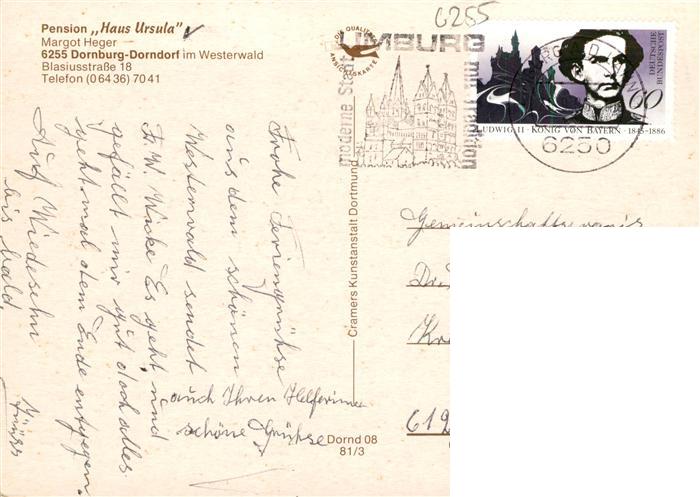 73936502 alte Postkarte Dorndorf Westerwald Pension Haus Ursula Gastraeume postalisch gelaufen Erhaltung siehe scans [FriedD77] KatCode: 11110006533004