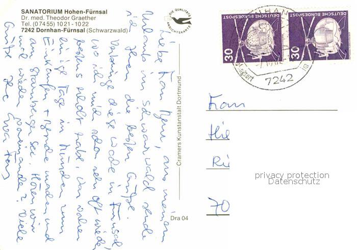 72840046 alte Postkarte Dornhan Fuernsal Sanatorium Hohen Fuernsal postalisch gelaufen Erhaltung siehe scans [LiesaD40] KatCode: 11110008325012