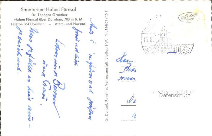 72198117 alte Postkarte Dornhan Sanatorium Hohen Fuernsal postalisch gelaufen Erhaltung siehe scans KatCode: 11110008325012