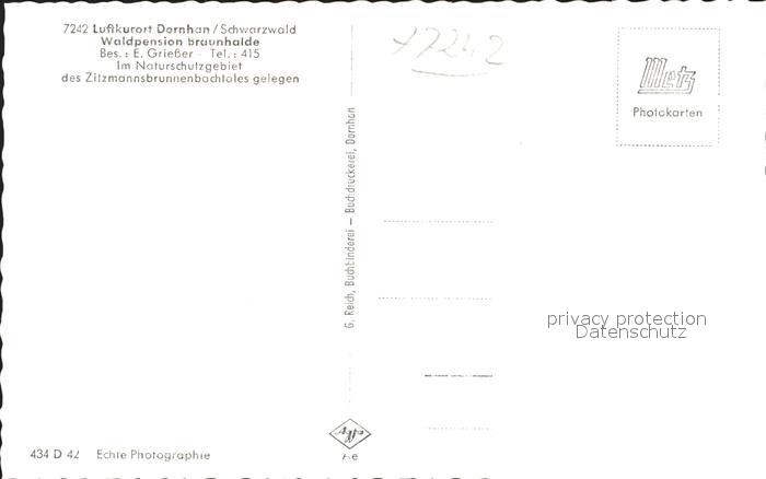 41768356 Dornhan Waldpension Braunhalde Luftkurort Schwarzwald Naturschutzgebiet Zitzmannsbrunnenbachtal postalisch nicht gelaufen Erhaltung siehe scans KatCode: 11110008325012