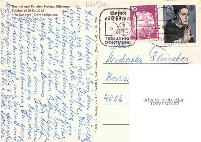 74100312 alte Postkarte Dornholthausen Sundern Hochsauerlandkreis NRW Gasthof Pension Kloeckener postalisch gelaufen Erhaltung siehe scans [FriedD77] KatCode: 11110005958044