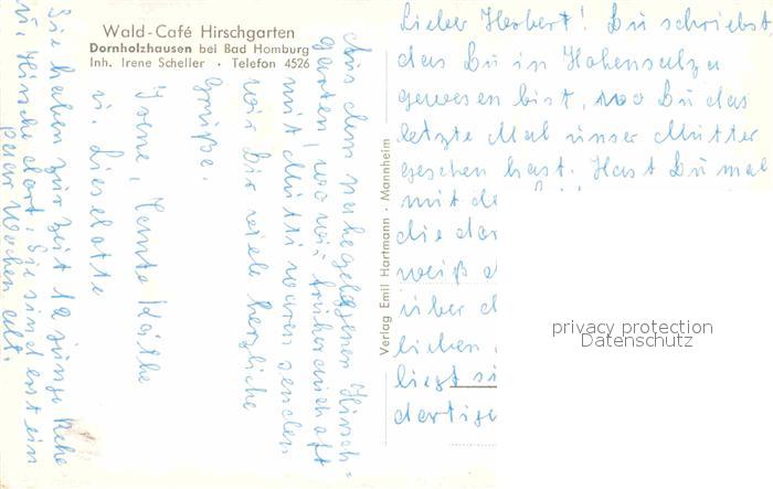 72767945 Dornholzhausen Taunus Wald Cafe Hirschgarten postalisch nicht gelaufen Erhaltung siehe scans [AndreD76] KatCode: 11110006434001