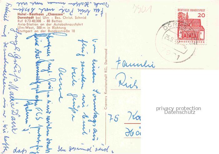 74049887 alte Postkarte Dornstadt Wuerttemberg Ulm Hotel Rasthaus Chausee Restaurant postalisch gelaufen Erhaltung siehe scans [FriedD77] KatCode: 11110008425031
