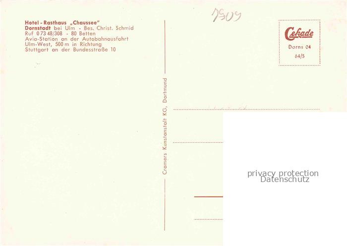 74050039 Dornstadt Wuerttemberg Ulm Hotel Rasthaus Chaussee Gastraeume Theke postalisch nicht gelaufen Erhaltung siehe scans [WerneD78] KatCode: 11110008425031