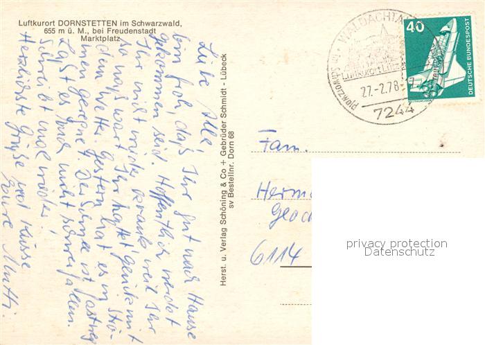 73258061 alte Postkarte Dornstetten Wuerttemberg Marktplatz Brunnen postalisch gelaufen Erhaltung siehe scans [WerneD78] KatCode: 11110008237019