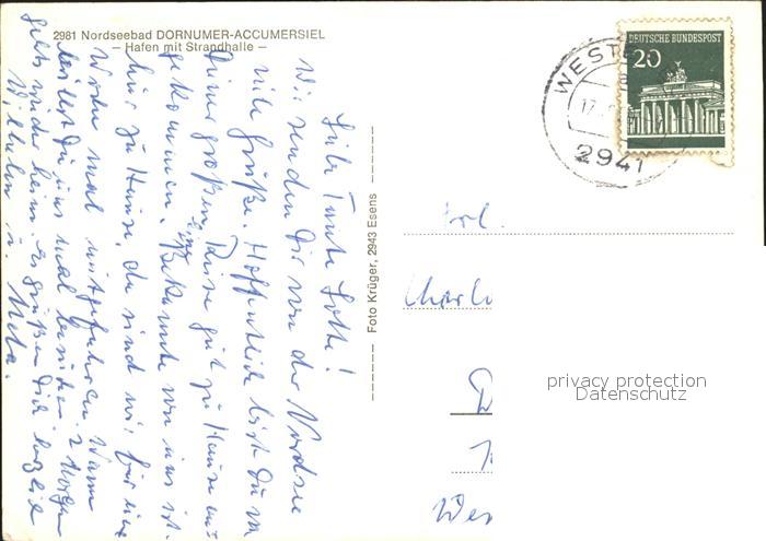 72048296 alte Postkarte Dornumer Accumersiel Hafen mit Strandhalle Fischkutter postalisch gelaufen Erhaltung siehe scans KatCode: 11110003452027