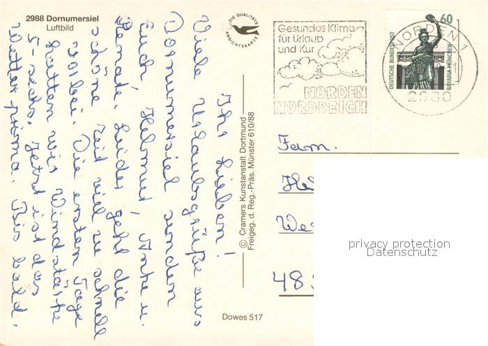 73661588 alte Postkarte Dornumersiel Fliegeraufnahme postalisch gelaufen Erhaltung siehe scans [WerneD78] KatCode: 11110003452027