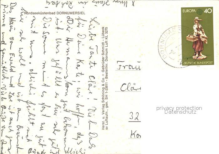 72523130 alte Postkarte Dornumersiel Fliegeraufnahme postalisch gelaufen Erhaltung siehe scans KatCode: 11110003452027