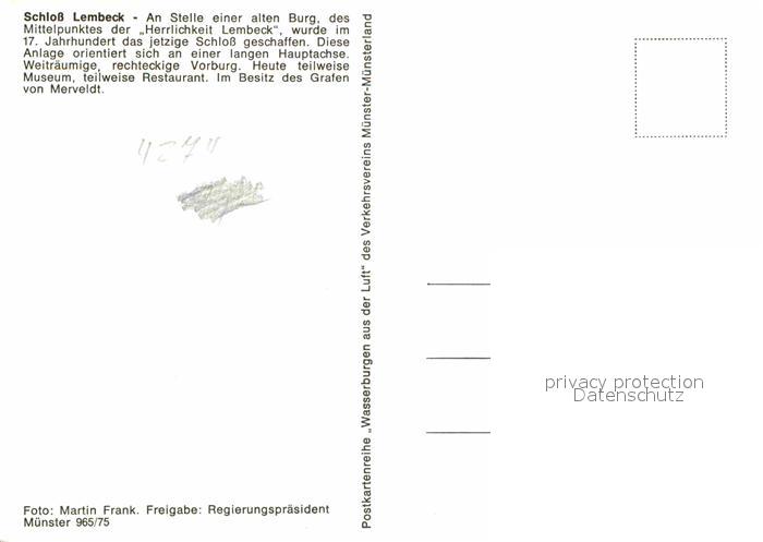 72888100 Dorsten Fliegeraufnahme Schloss Lembeck postalisch nicht gelaufen Erhaltung siehe scans [AndreD76] KatCode: 11110005562012