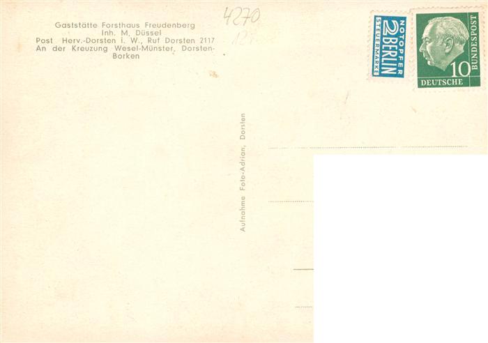 73874852 alte Postkarte Dorsten Gaststaette Forsthaus Freudenberg postalisch gelaufen Erhaltung siehe scans [WerneD78] KatCode: 11110005562012