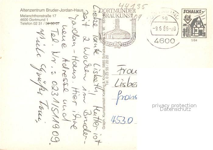73333099 alte Postkarte Dortmund Altenzentrum Bruder Jordan Haus postalisch gelaufen Erhaltung siehe scans [LiesaD40] KatCode: 11110005913000