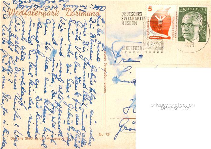 72990473 alte Postkarte DORTMUND CITY Altstadt in der Morgensonne Maibaum Gaststaette Tuerschild postalisch gelaufen Erhaltung siehe scans [FriedD77] KatCode: 11110005913000