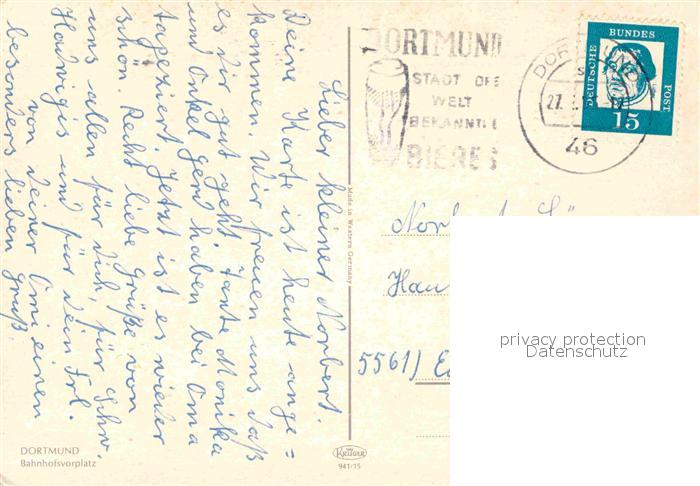 72718319 alte Postkarte DORTMUND CITY Bahnhofsvorplatz postalisch gelaufen Erhaltung siehe scans [LiesaD40] KatCode: 11110005913000