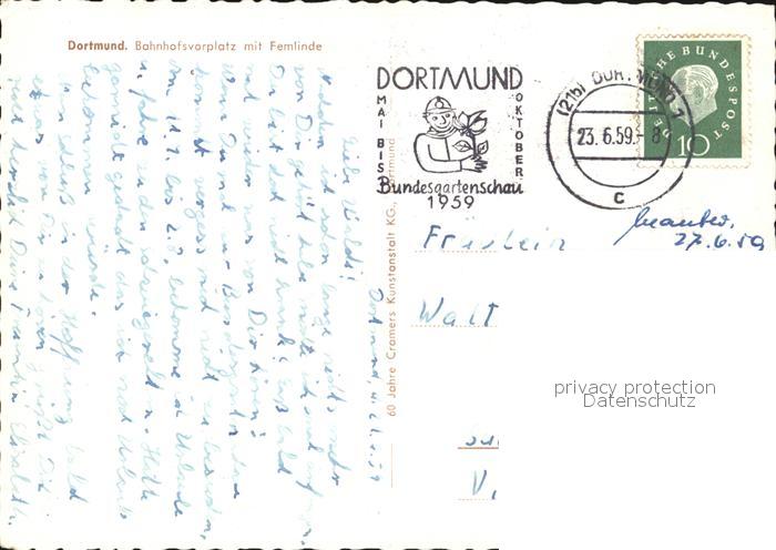 72598253 alte Postkarte DORTMUND CITY Bahnhofsvorplatz mit Femlinde postalisch gelaufen Erhaltung siehe scans [LiesaD40] KatCode: 11110005913000