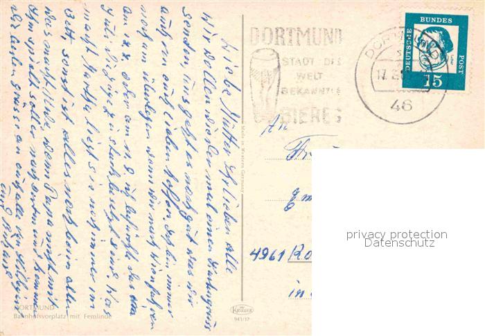 72786084 alte Postkarte DORTMUND CITY Bahnhofsvorplatz mit Femlinde postalisch gelaufen Erhaltung siehe scans [FriedD77] KatCode: 11110005913000