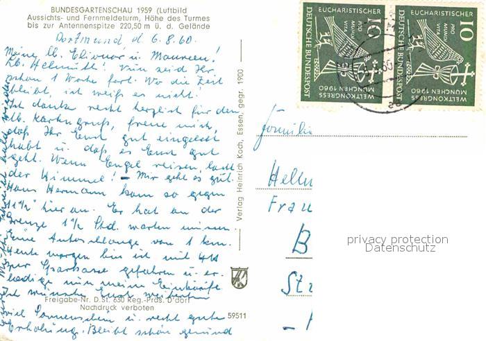 72758254 alte Postkarte DORTMUND CITY Bundesgartenschau Aussichtsturm Fernmeldeturm Fliegeraufnahme postalisch gelaufen Erhaltung siehe scans [FriedD77] KatCode: 11110005913000