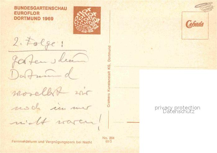 72837593 DORTMUND CITY Bundesgartenschau Euroflor Fernmeldeturm Vergnuegungspark postalisch nicht gelaufen Erhaltung siehe scans [PaolaD17] KatCode: 11110005913000