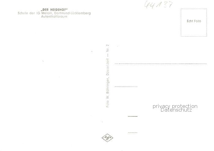 73863982 DORTMUND CITY Der Heidehof Schule der IG Metall Dortmund Luecklemberg Aufenthaltsraum postalisch nicht gelaufen Erhaltung siehe scans [WerneD78] Wern Katcode 11110005913000