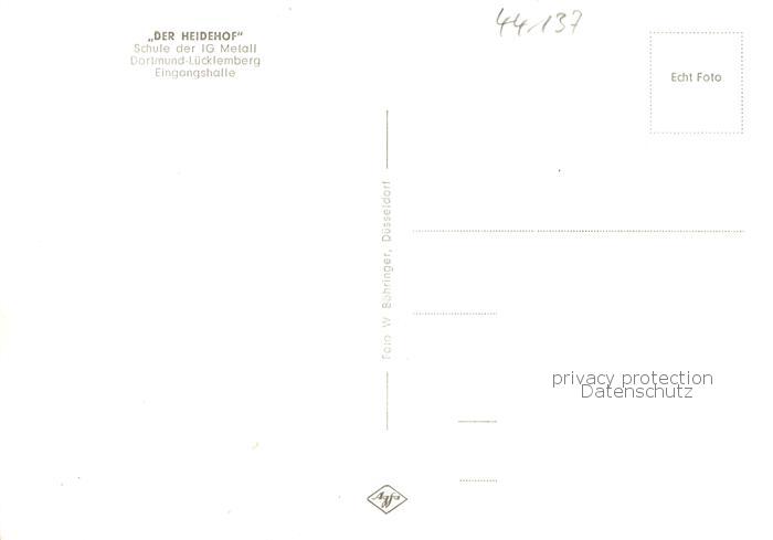 73863981 DORTMUND CITY Der Heidehof Schule der IG Metall Dortmund Luecklemberg Eingangshalle postalisch nicht gelaufen Erhaltung siehe scans [WerneD78] Wern Katcode 11110005913000