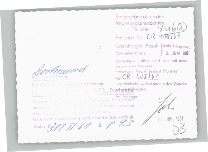 40684969 DORTMUND CITY Fliegeraufnahme postalisch nicht gelaufen Alte Ansichtskarte Postkarte Katcode 11110005913000