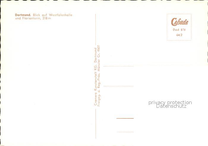 72469349 DORTMUND CITY Fliegeraufnahme mit Westfalenhalle und Florianturm postalisch nicht gelaufen Erhaltung siehe scans KatCode: 11110005913000