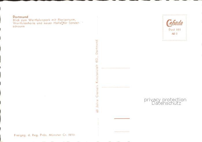 71987120 DORTMUND CITY Fliegeraufnahme Westfalenpark Florianturm Westfalenhalle postalisch nicht gelaufen Erhaltung siehe scans KatCode: 11110005913000