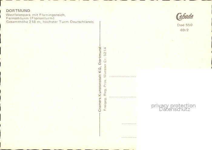 71989497 DORTMUND CITY Fliegeraufnahme Westfalenpark mit Flamingoteich Fernsehturm postalisch nicht gelaufen Erhaltung siehe scans KatCode: 11110005913000