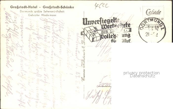 41587644 DORTMUND CITY Grossstadt Hotel postalisch gelaufen Erhaltung siehe scans Alte Ansichtskarte Postkarte alte Postkarte Stef Katcode 11110005913000