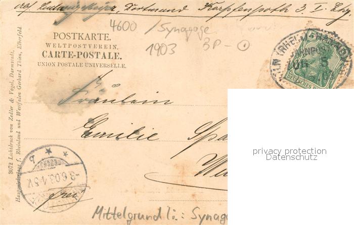 73709582 DORTMUND CITY Hohestrasse m. Synagoge postalisch gelaufen Erhaltung siehe scans [LiesaD40] alte Postkarte Lies Katcode 11110005913000