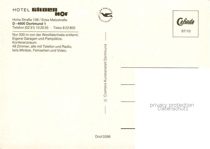 73834111 DORTMUND CITY Hotel Gilden Hof Restaurant postalisch nicht gelaufen Erhaltung siehe scans [FriedD77] Frie Katcode 11110005913000