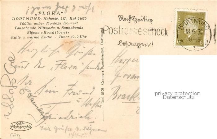 43017336 DORTMUND CITY Parkrestaurant Flora postalisch gelaufen Erhaltung siehe scans [FriedD77] alte Postkarte Frie Katcode 11110005913000