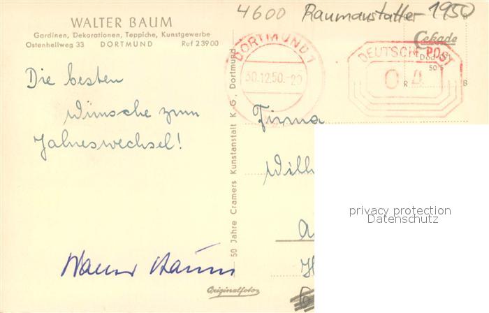 73709851 DORTMUND CITY Raumausstatter Walter Baum postalisch gelaufen Erhaltung siehe scans [LiesaD40] alte Postkarte Lies Katcode 11110005913000