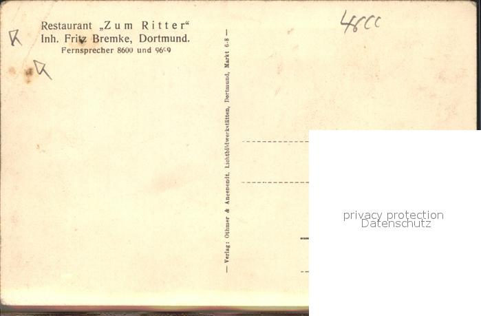41585234 DORTMUND CITY Restaurant Zum Ritter Fritz Bremke postalisch nicht gelaufen Erhaltung siehe scans Alte Ansichtskarte Postkarte hz_L Katcode 11110005913000