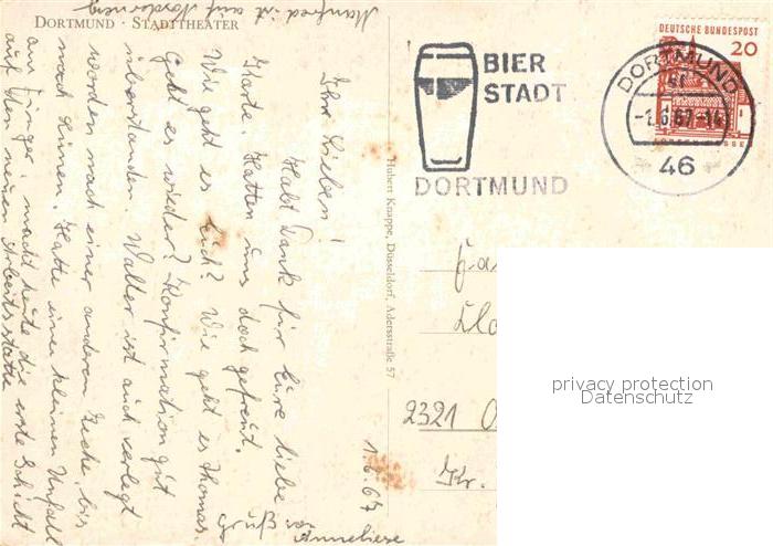 72771128 alte Postkarte DORTMUND CITY Stadttheater postalisch gelaufen Erhaltung siehe scans [WerneD78] KatCode: 11110005913000