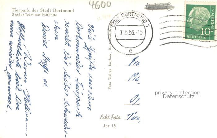 73700474 DORTMUND CITY Tierpark Grosser Teich mit Raststaette postalisch gelaufen Erhaltung siehe scans [LiesaD40] alte Postkarte Lies Katcode 11110005913000