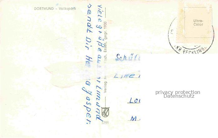 74153373 alte Postkarte DORTMUND CITY Volkspark Schwanenteich postalisch gelaufen Erhaltung siehe scans [FriedD77] KatCode: 11110005913000