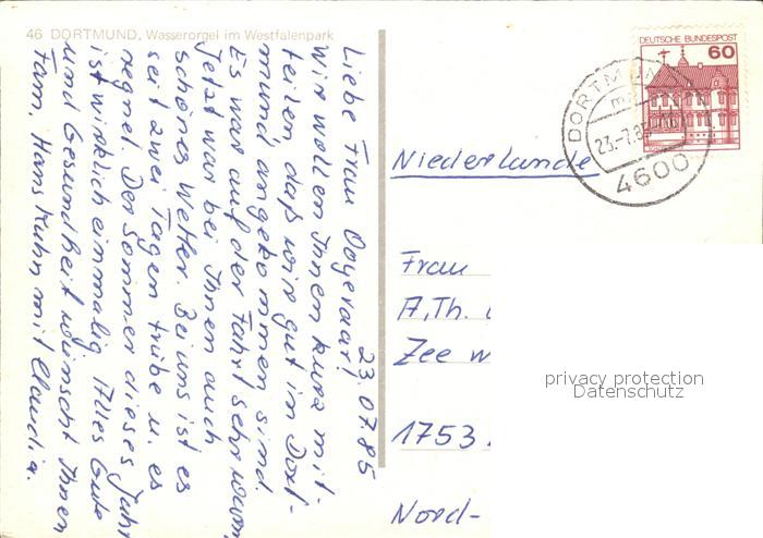 72310420 alte Postkarte DORTMUND CITY Wasserorgel im Westfalenpark postalisch gelaufen Erhaltung siehe scans KatCode: 11110005913000