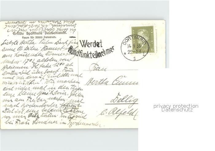 72134521 alte Postkarte DORTMUND CITY Westfalenhalle postalisch gelaufen Erhaltung siehe scans KatCode: 11110005913000