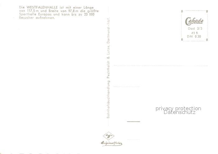 72958520 DORTMUND CITY Westfalenhalle postalisch nicht gelaufen Erhaltung siehe scans [PaolaD17] KatCode: 11110005913000
