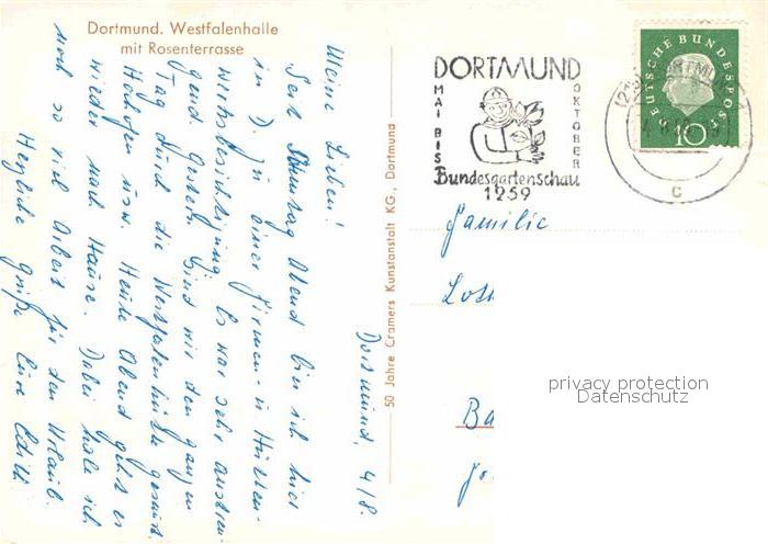 72773582 alte Postkarte DORTMUND CITY Westfalenhalle Rosenterrasse postalisch gelaufen Erhaltung siehe scans [AndreD76] KatCode: 11110005913000