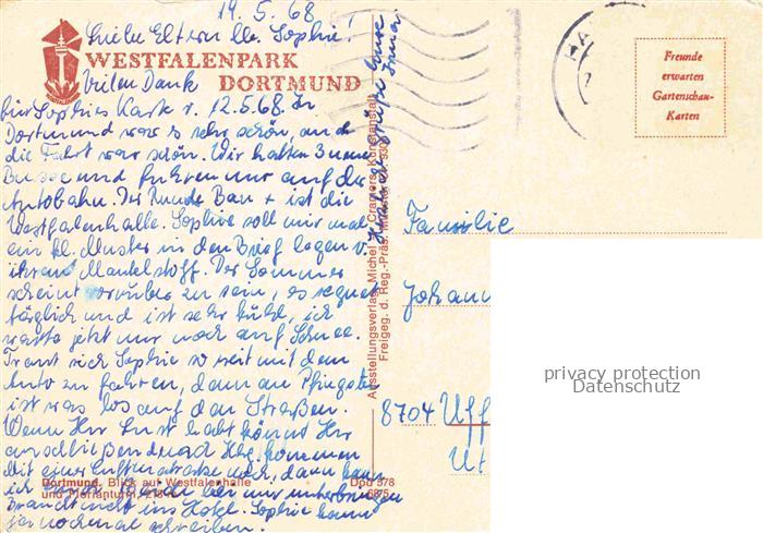 74039812 DORTMUND CITY Westfalenpark postalisch gelaufen Fliegeraufnahme Erhaltung siehe scans [FriedD77] Fliegeraufnahme alte Postkarte Frie Katcode 11110005913000