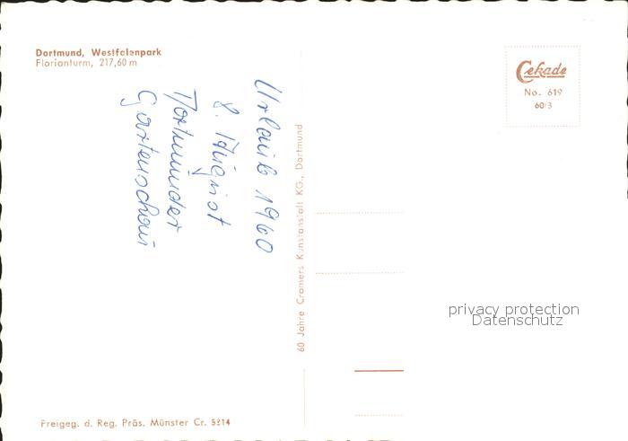 71940358 DORTMUND CITY Westfelenpark Florianturm postalisch nicht gelaufen Erhaltung siehe scans KatCode: 11110005913000