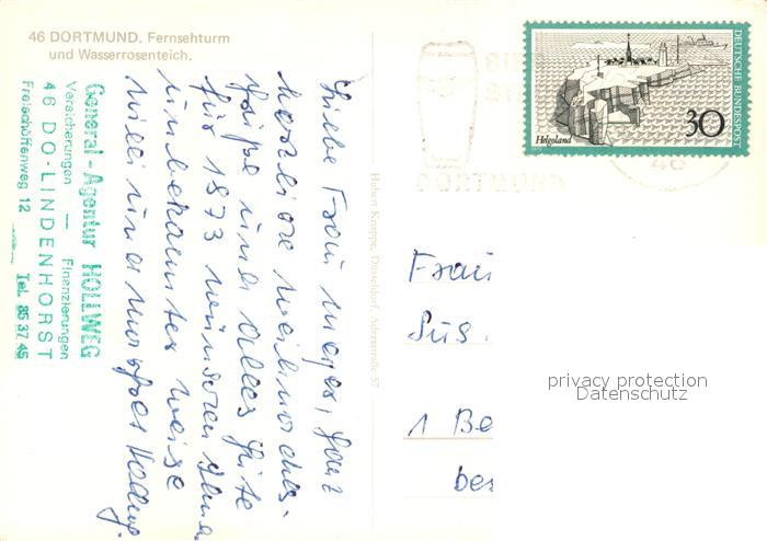 73124675 alte Postkarte Dortmund Fernsehturm und Wasserrosenteich postalisch gelaufen Erhaltung siehe scans [FriedD77] KatCode: 11110005913000