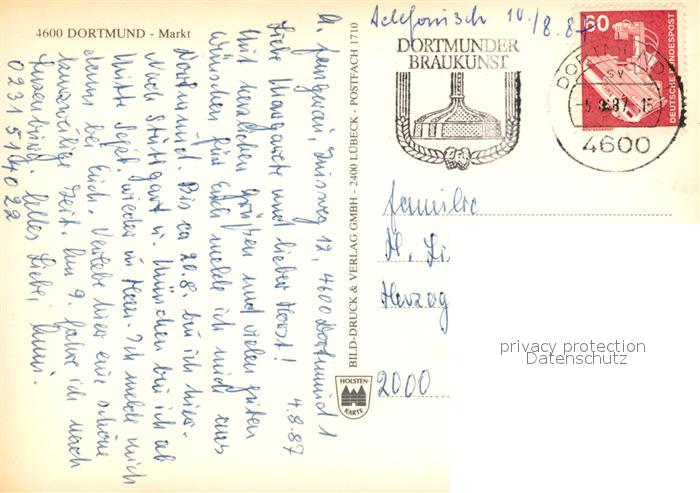 73295463 alte Postkarte Dortmund Markt Denkmal Wasserspiele postalisch gelaufen Erhaltung siehe scans [KathaD81] KatCode: 11110005913000