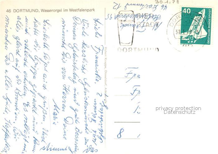 73143816 alte Postkarte Dortmund Wasserorgel im Westfalenpark Bootfahren postalisch gelaufen Erhaltung siehe scans [FriedD77] KatCode: 11110005913000