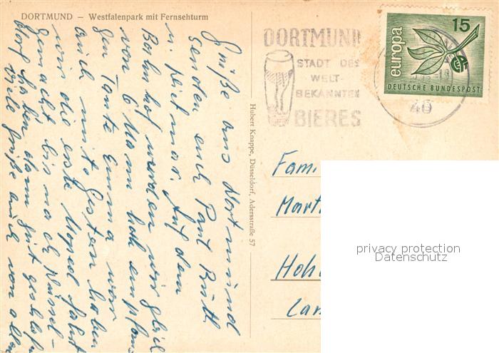 73127631 alte Postkarte Dortmund Westfalenpark Fernsehturm postalisch gelaufen Erhaltung siehe scans [KathaD81] KatCode: 11110005913000