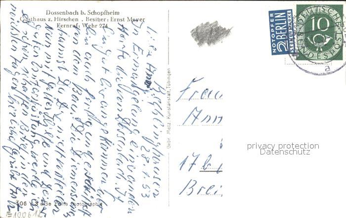 32028203 alte Postkarte Dossenbach Gasthaus zum Hirschen postalisch gelaufen Erhaltung siehe scans KatCode: 11110008336082