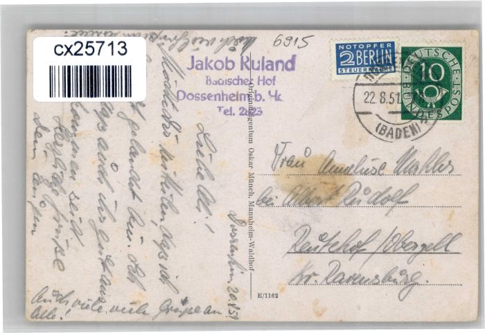 30826838 alte Postkarte Dossenheim postalisch gelaufen KatCode: 11110008226012