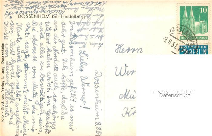 33664886 alte Postkarte Dossenheim Blick ins Tal auf den Ort postalisch gelaufen Erhaltung siehe scans [FriedD77] KatCode: 11110008226012
