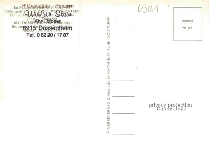 74048568 Dossenheim Heidelberg Hoehengasthof Weisser Stein Wildpark Huette Waldweg postalisch nicht gelaufen Erhaltung siehe scans [WerneD78] KatCode: 11110008226012